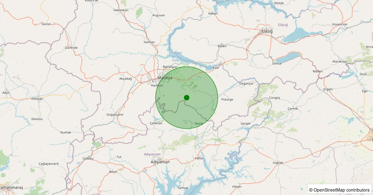 Son 7 gün içinde Battalgazi - Gülümuşağı Köyü noktasından 100 km yarıçap içerisinde meydana gelen diğer depremler: