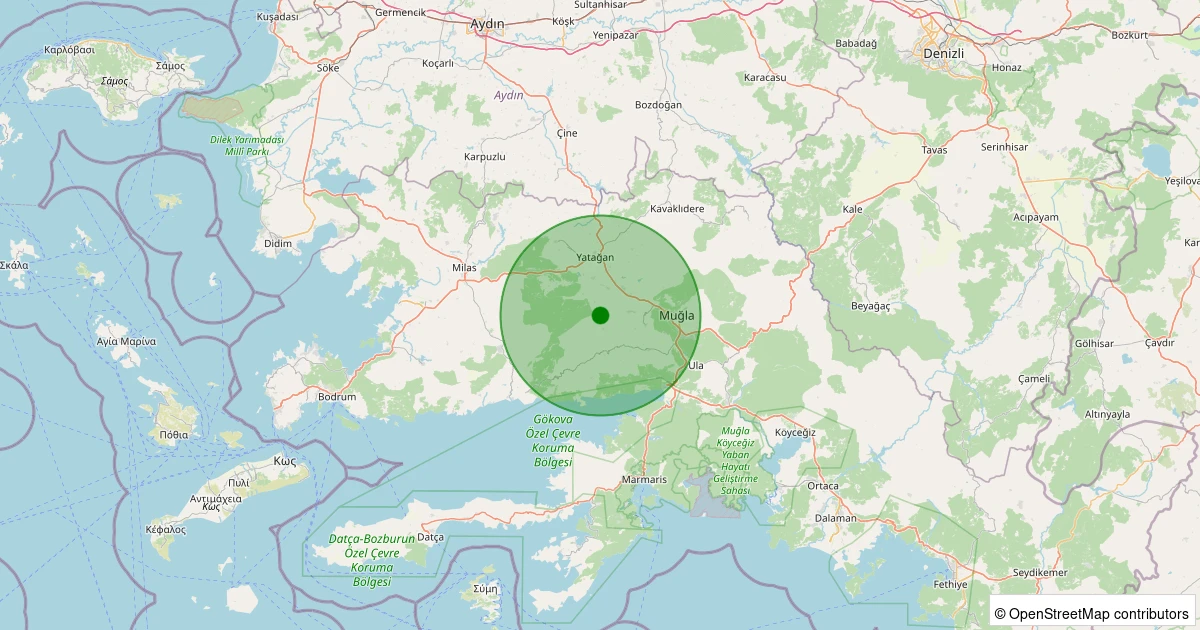 Son 7 gün içinde Menteşe - Çiftlik noktasından 100 km yarıçap içerisinde meydana gelen diğer depremler: