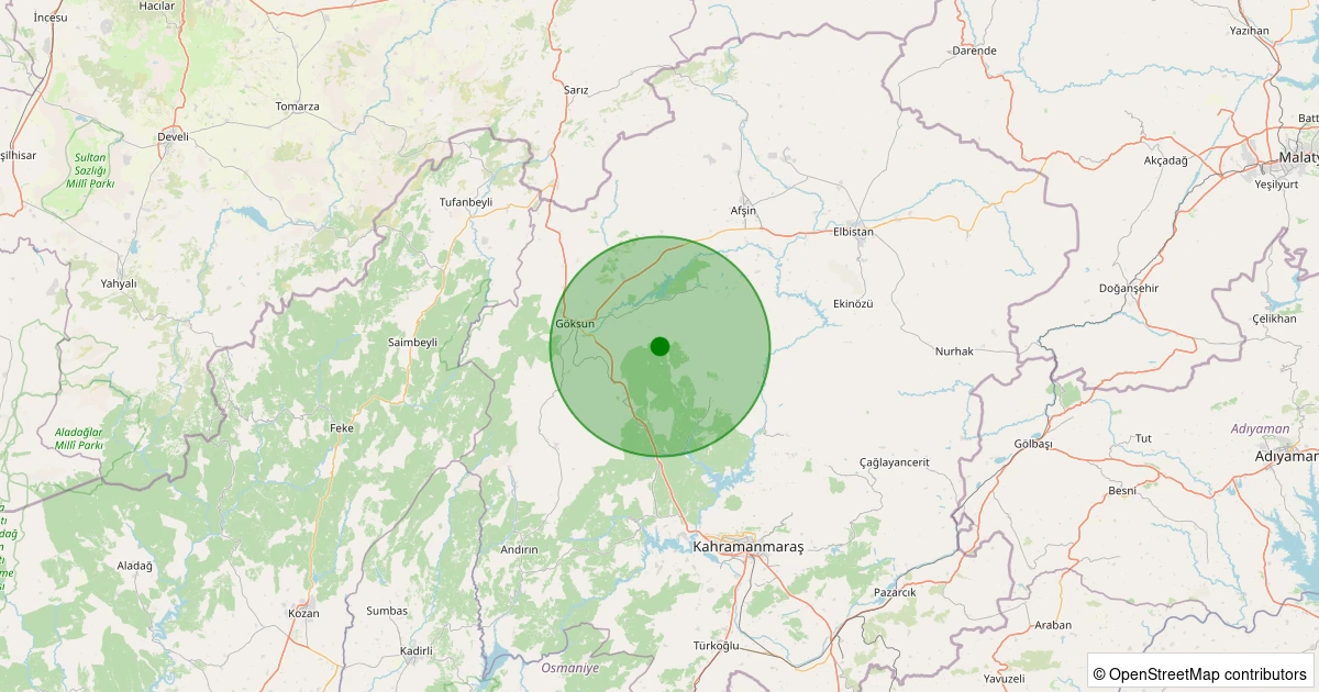 Son 7 gün içinde Göksun - Yeşilköy noktasından 100 km yarıçap içerisinde meydana gelen diğer depremler: