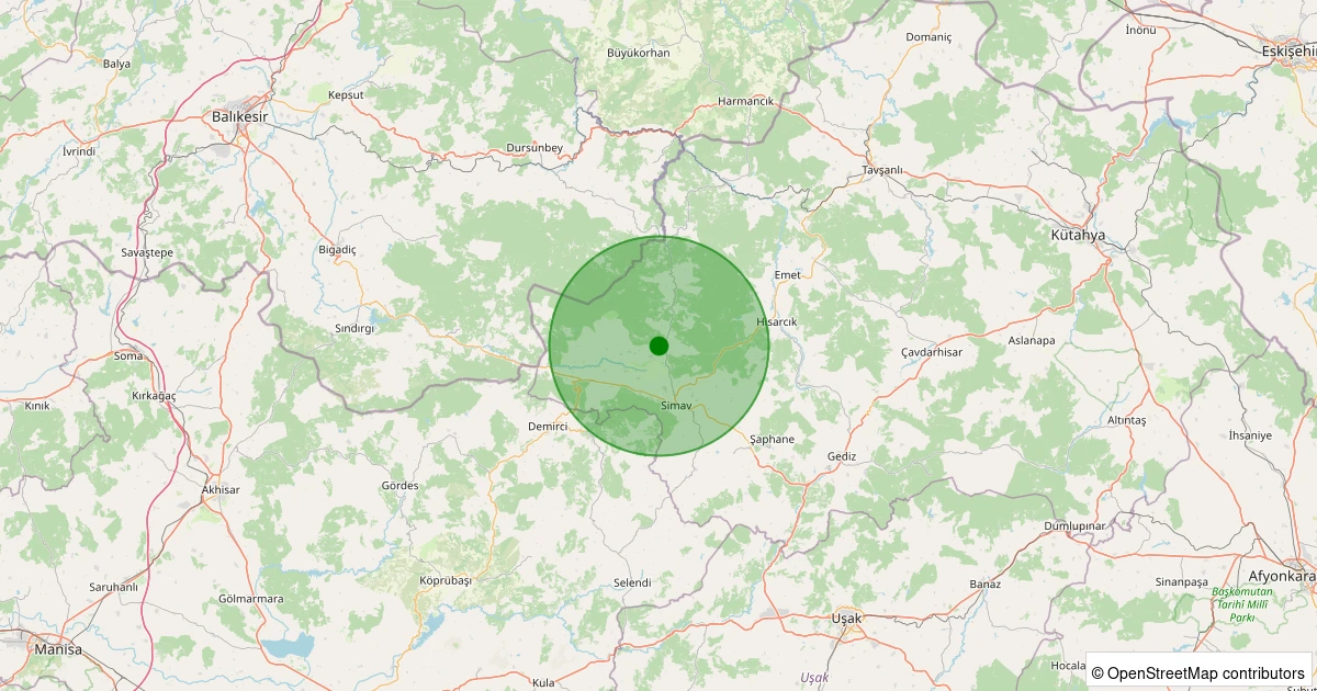 Son 7 gün içinde Simav - Hamzabey noktasından 100 km yarıçap içerisinde meydana gelen diğer depremler: