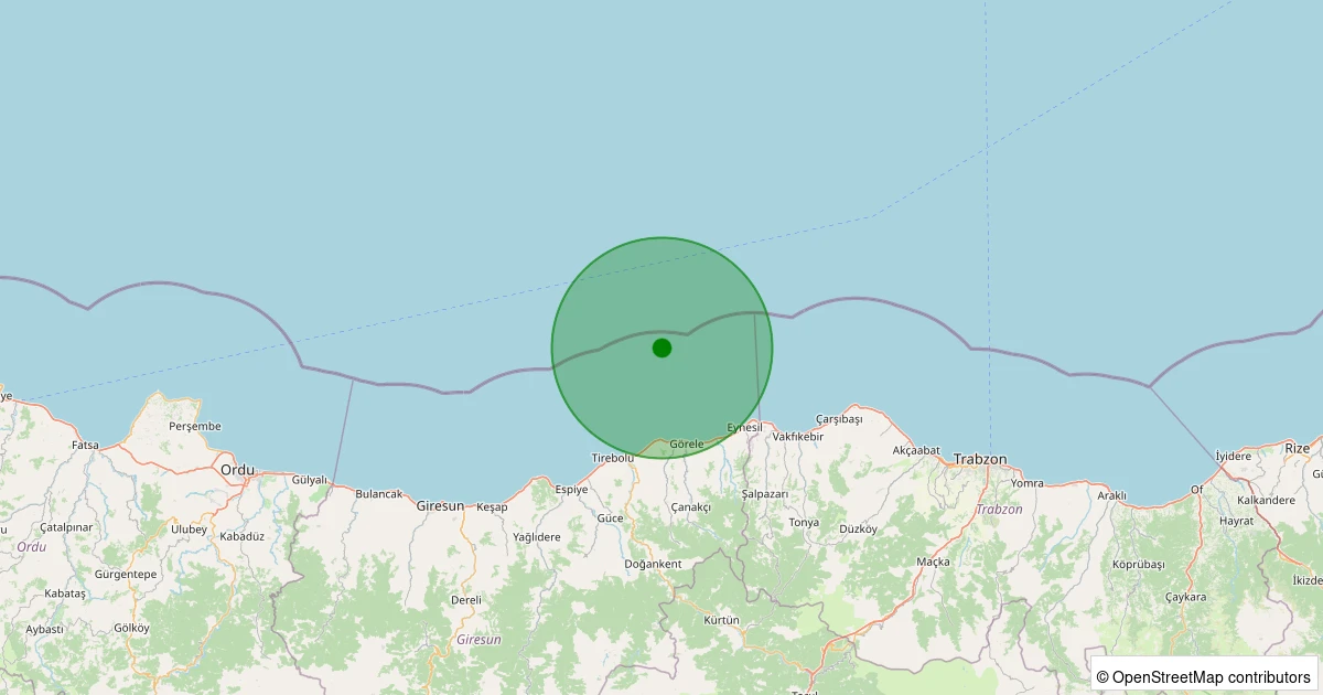Son bir hafta içerisinde Karadeniz - [20.09 km] Görele (Giresun) noktasından 100 km yarıçap içerisinde toplamda 9 deprem kaydedilmiştir. Bu depremlerden en büyüğü 3.6 büyüklüğünde ve en sığ odaklısı 6.05 kilometre derinlikte gerçekleşmiştir.