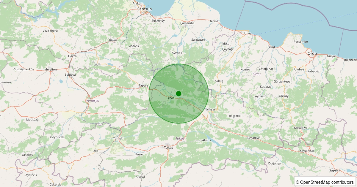 Son 7 gün içinde Erbaa - Üzümlü Köyü noktasından 100 km yarıçap içerisinde meydana gelen diğer depremler: