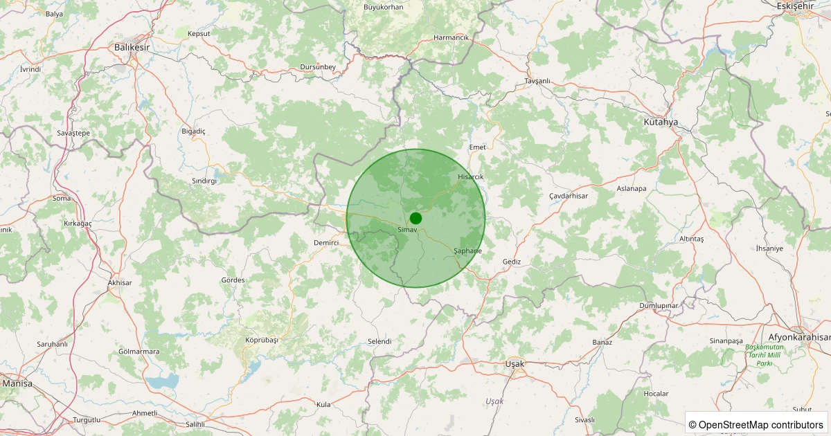Son 7 gün içinde Simav - Muradınlar noktasından 100 km yarıçap içerisinde meydana gelen diğer depremler: