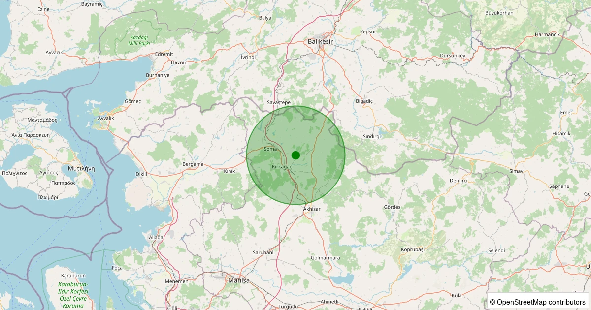 Son 7 gün içinde Kırkağaç - Küçükyaya noktasından 100 km yarıçap içerisinde meydana gelen diğer depremler: