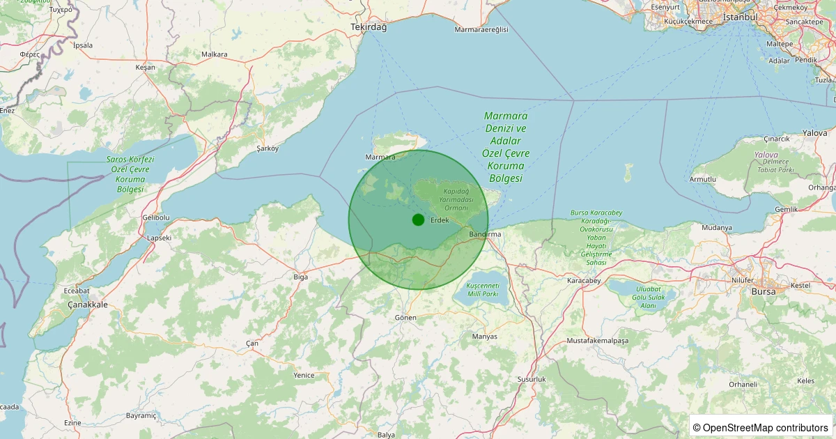 Son bir hafta içerisinde ERDEK noktasından 100 km yarıçap içerisinde toplamda 35 deprem kaydedilmiştir. Bu depremlerden en büyüğü 3.0 büyüklüğünde ve en sığ odaklısı 2.70 kilometre derinlikte gerçekleşmiştir.