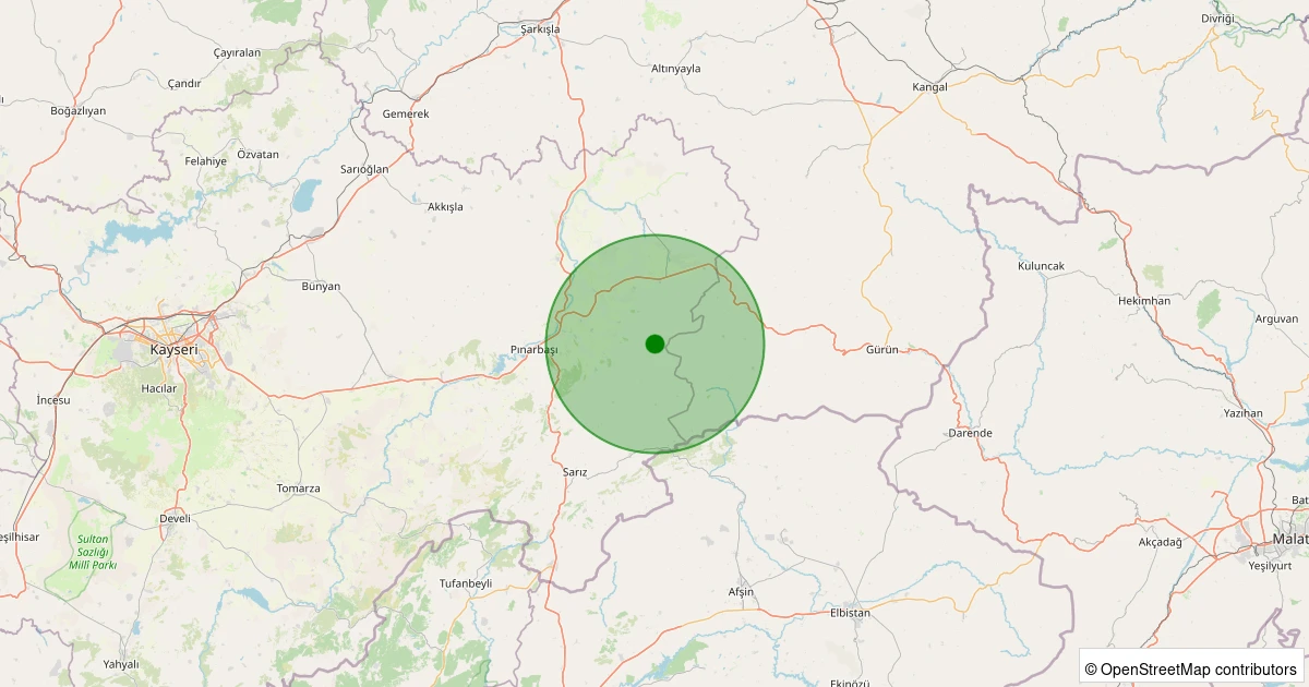 Son 7 gün içinde Pınarbaşı - Eskiyassıpınar Köyü noktasından 100 km yarıçap içerisinde meydana gelen diğer depremler: