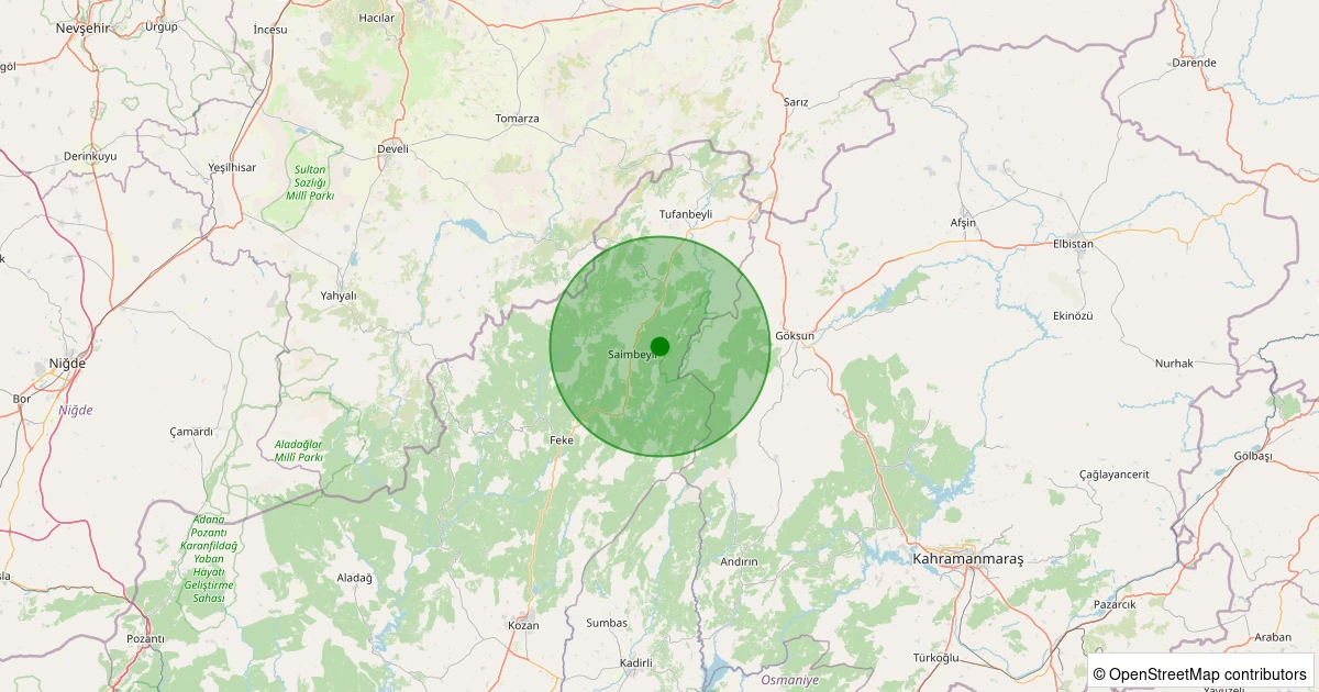 Son 7 gün içinde Saimbeyli - İslam noktasından 100 km yarıçap içerisinde meydana gelen diğer depremler: