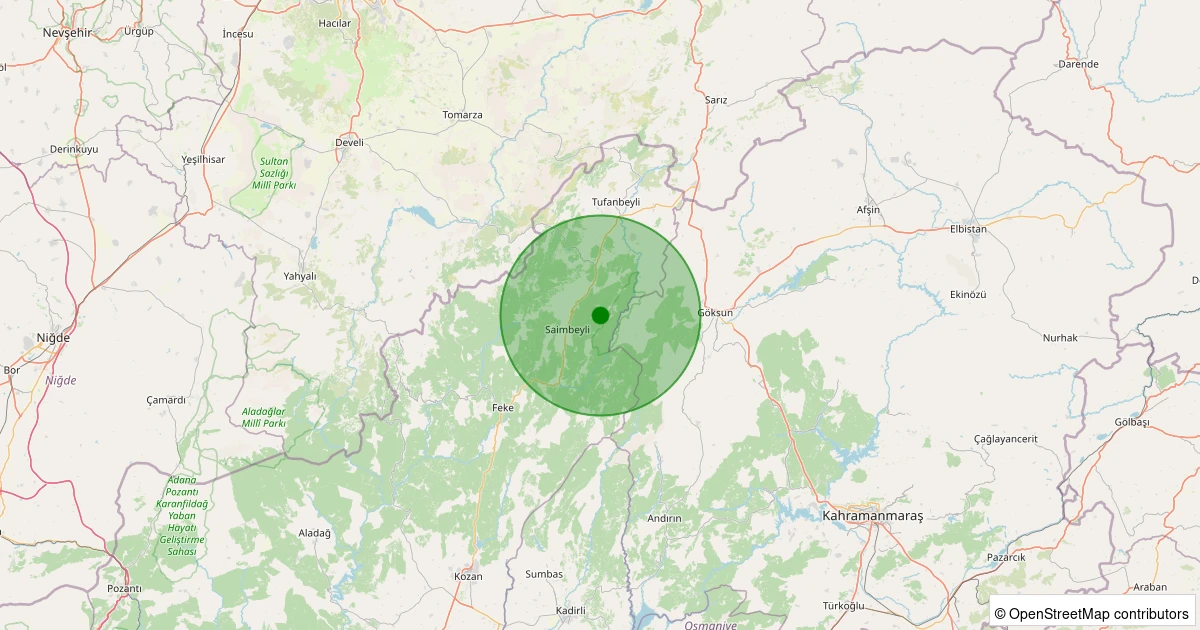 Son 7 gün içinde Saimbeyli - Beypınarı noktasından 100 km yarıçap içerisinde meydana gelen diğer depremler: