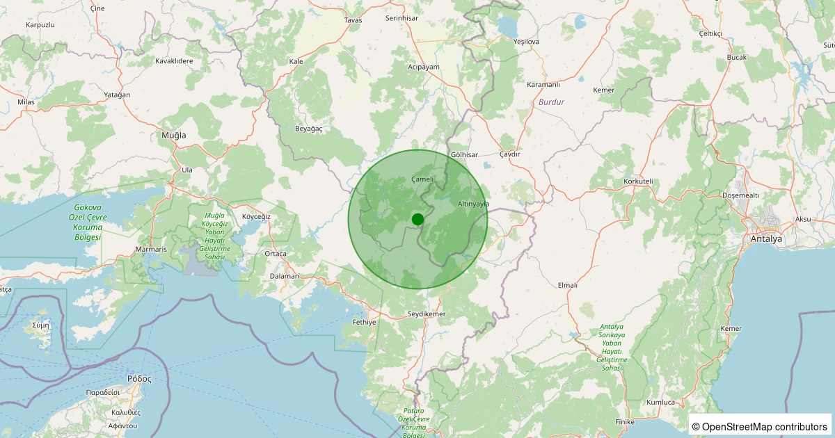 Son 7 gün içinde Çameli - Gürsu noktasından 100 km yarıçap içerisinde meydana gelen diğer depremler: