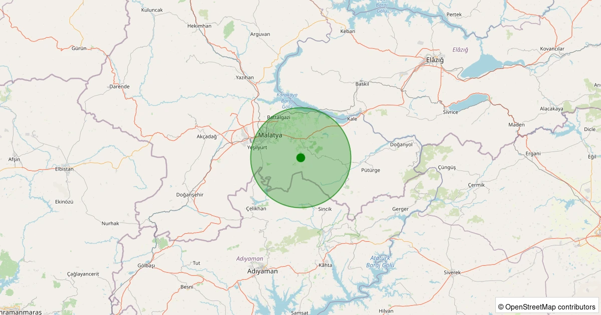 Son 7 gün içinde Battalgazi - Elmalı Köyü noktasından 100 km yarıçap içerisinde meydana gelen diğer depremler: