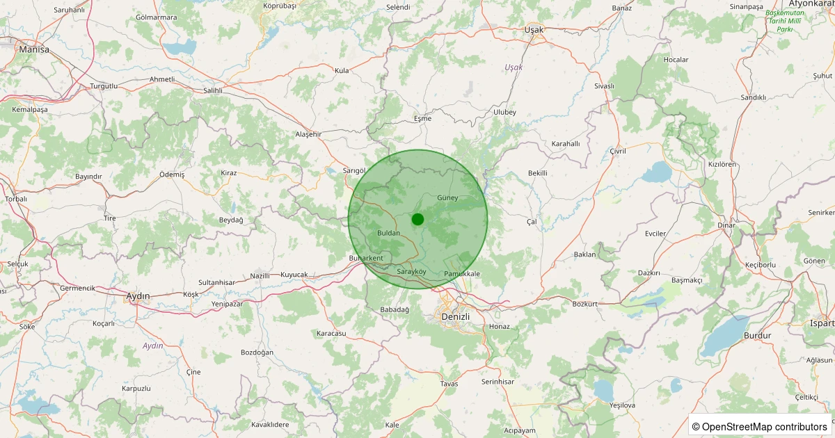 Son 7 gün içinde Buldan - Yenicekent noktasından 100 km yarıçap içerisinde meydana gelen diğer depremler: