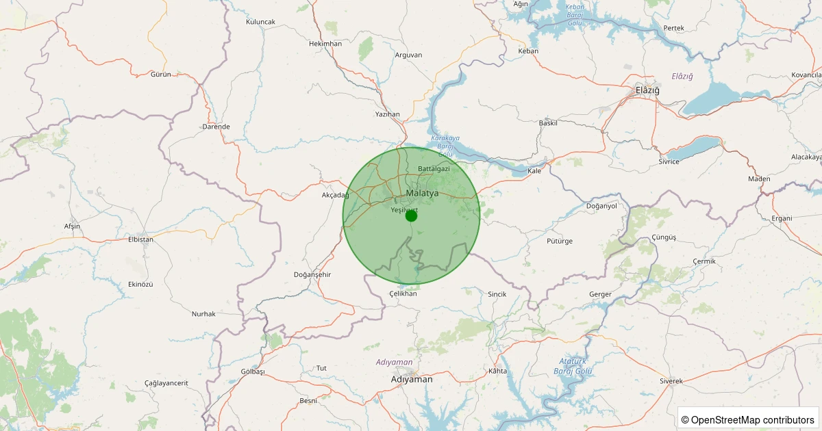Son 7 gün içinde Yeşilyurt - Gündüzbey noktasından 100 km yarıçap içerisinde meydana gelen diğer depremler: