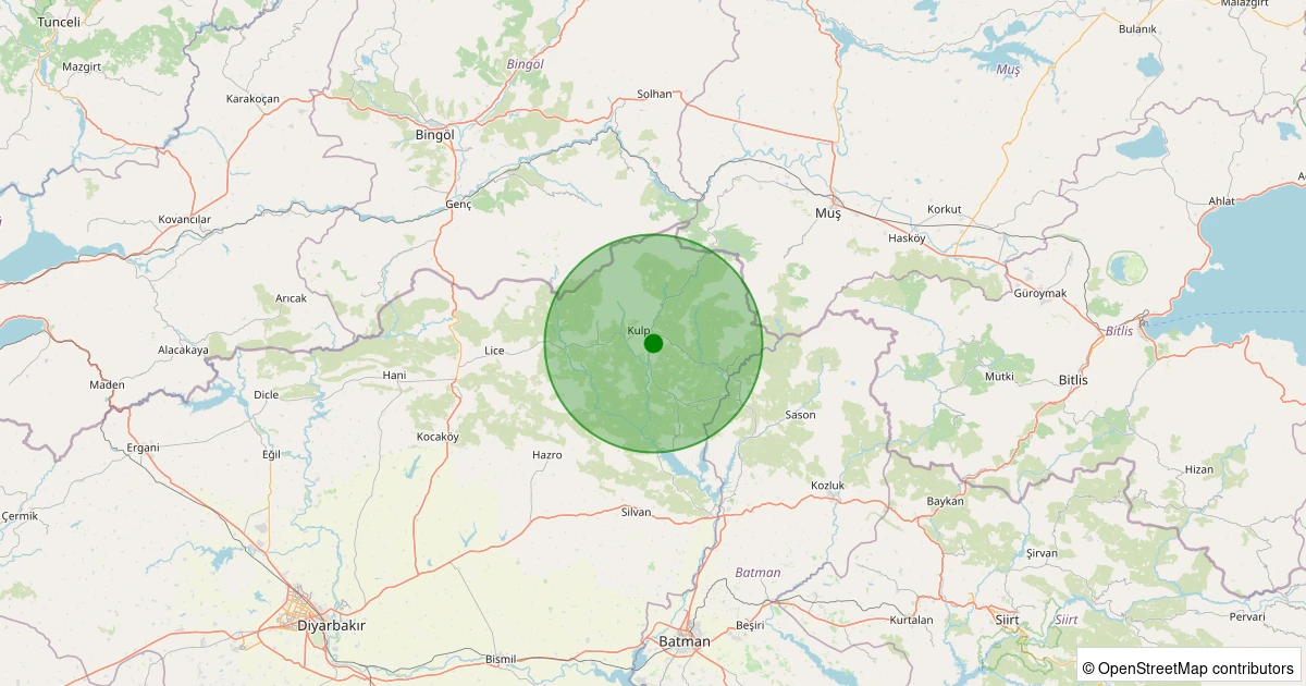 Son 7 gün içinde Kulp - Argün Köyü noktasından 100 km yarıçap içerisinde meydana gelen diğer depremler: