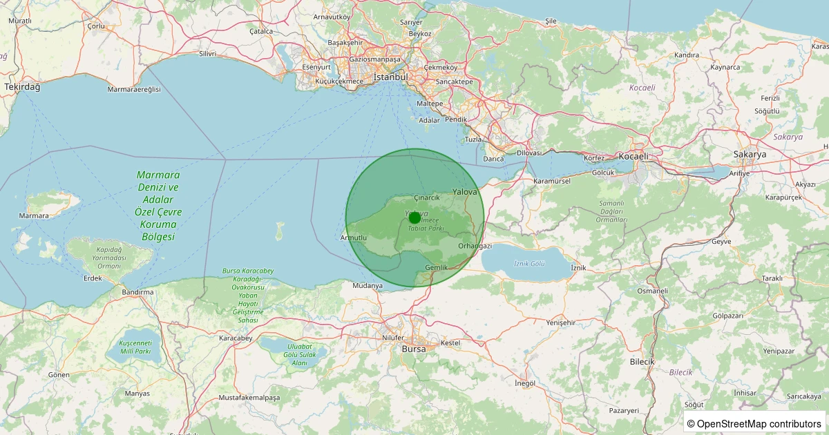 Son 7 gün içinde Çınarcık - Teşvikiye noktasından 100 km yarıçap içerisinde meydana gelen diğer depremler: