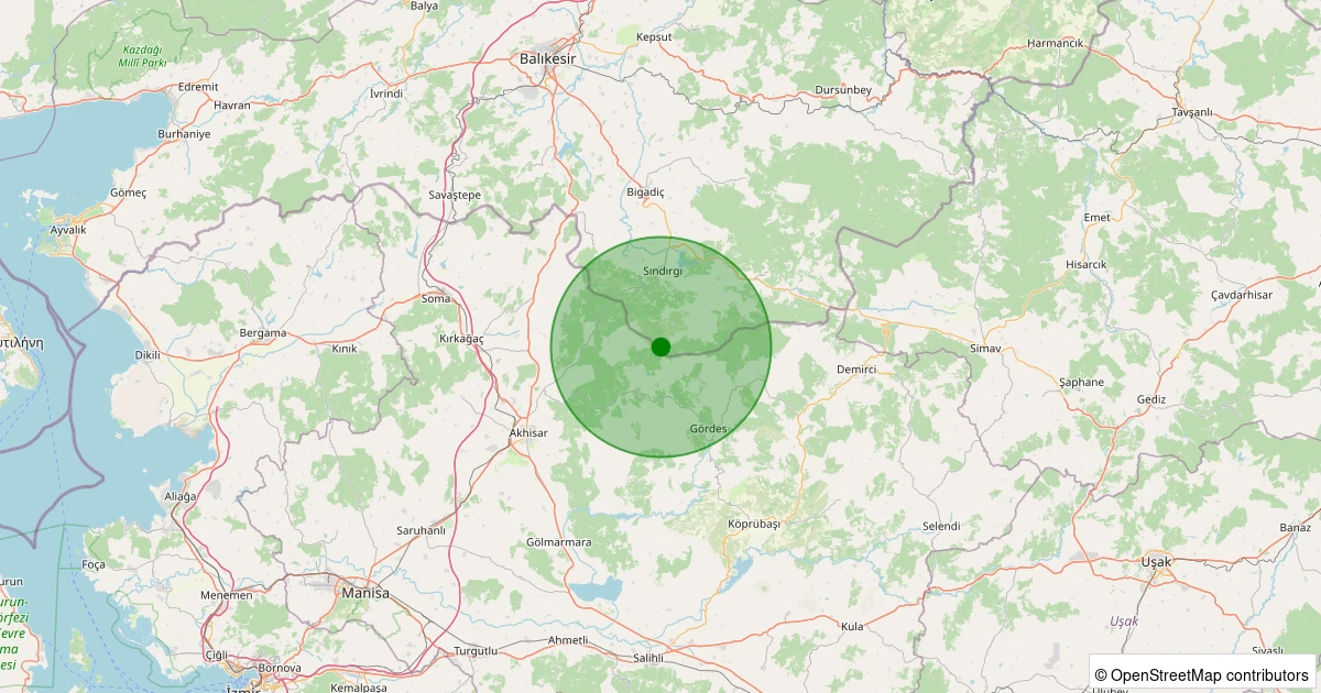 Son 7 gün içinde Sındırgı - Kınık noktasından 100 km yarıçap içerisinde meydana gelen diğer depremler: