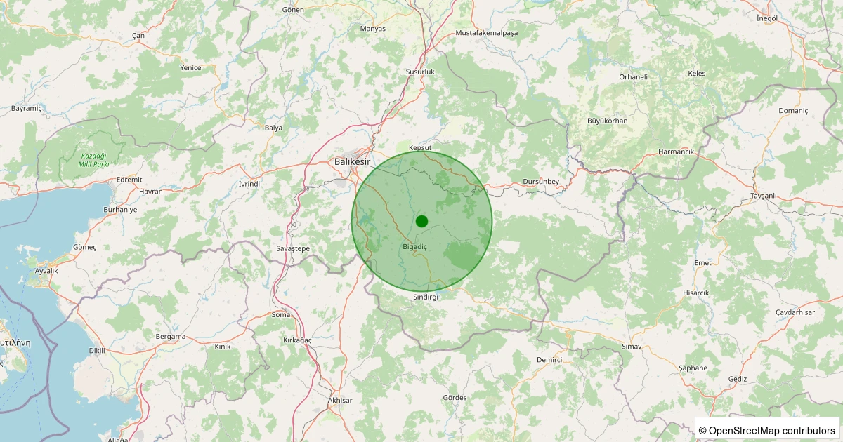 Son bir hafta içerisinde Balıkesir şehri Bigadiç - İskele noktasından 100 km yarıçap içerisinde toplamda 559 deprem kaydedilmiştir. Bu depremlerden en büyüğü 3.0 büyüklüğünde ve en sığ odaklısı 0.00 kilometre derinlikte gerçekleşmiştir.