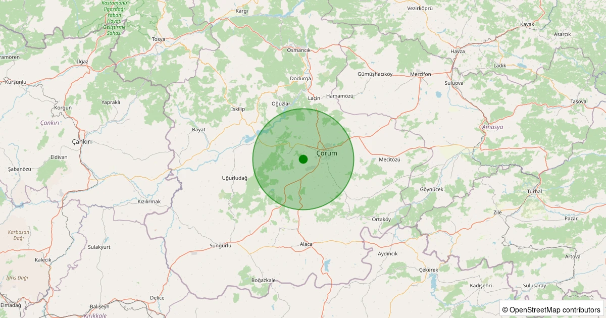 Son bir hafta içerisinde Çorum şehri Merkez - Güzelyurt Köyü noktasından 100 km yarıçap içerisinde toplamda 15 deprem kaydedilmiştir. Bu depremlerden en büyüğü 2.3 büyüklüğünde ve en sığ odaklısı 5.00 kilometre derinlikte gerçekleşmiştir.