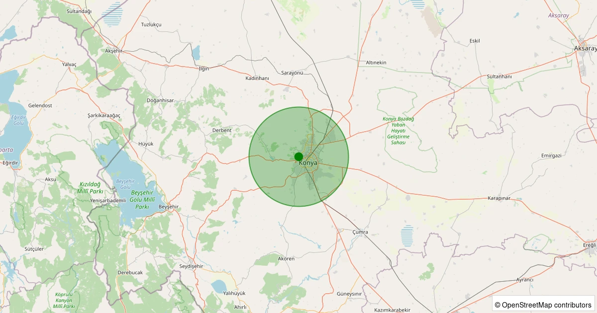 Son bir hafta içerisinde Konya şehri Selçuklu noktasından 100 km yarıçap içerisinde toplamda 41 deprem kaydedilmiştir. Bu depremlerden en büyüğü 1.7 büyüklüğünde ve en sığ odaklısı 0.00 kilometre derinlikte gerçekleşmiştir.