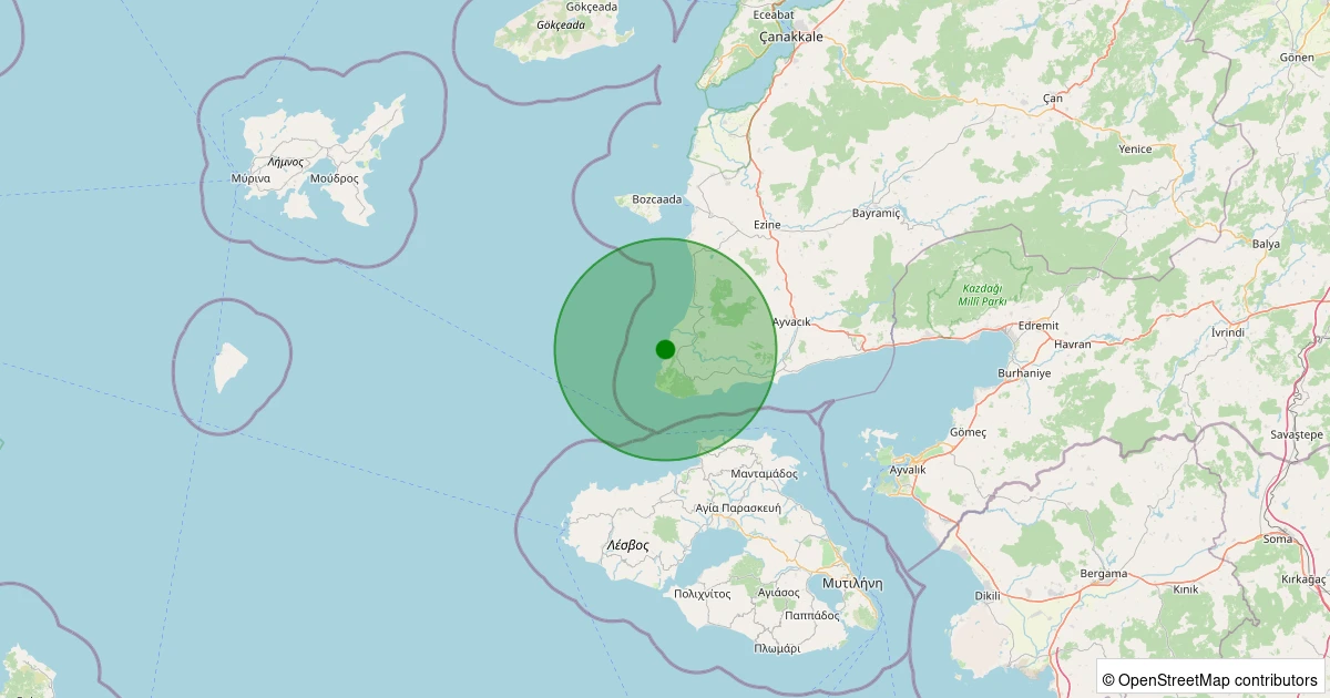 Son bir hafta içerisinde Ege Denizi - [02.98 km] Ayvacık (Çanakkale) noktasından 100 km yarıçap içerisinde toplamda 36 deprem kaydedilmiştir. Bu depremlerden en büyüğü 3.3 büyüklüğünde ve en sığ odaklısı 1.80 kilometre derinlikte gerçekleşmiştir.