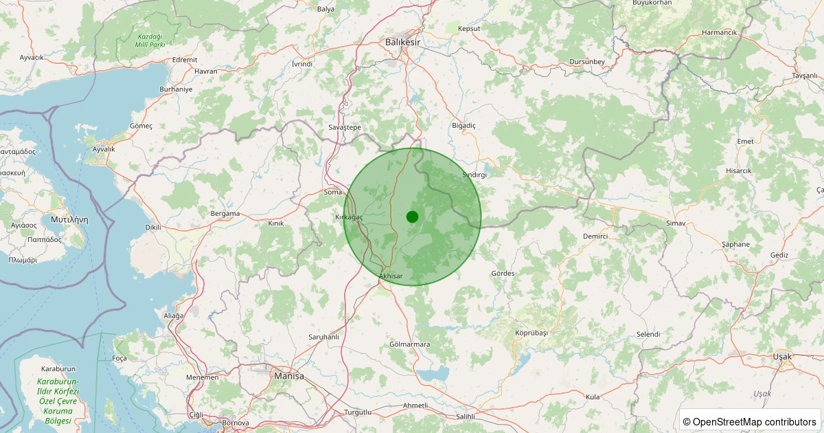 Son 7 gün içinde Akhisar - Dolmadeğirmen Köyü noktasından 100 km yarıçap içerisinde meydana gelen diğer depremler: