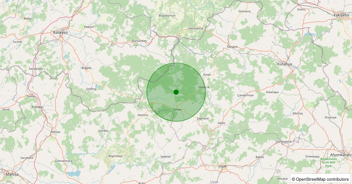 Son 7 gün içinde Simav - Yemişli Köyü noktasından 100 km yarıçap içerisinde meydana gelen diğer depremler: