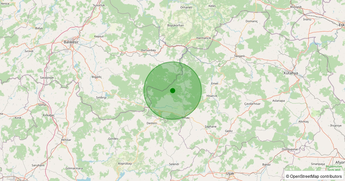 Son 7 gün içinde Simav - Çamlık Köyü noktasından 100 km yarıçap içerisinde meydana gelen diğer depremler:
