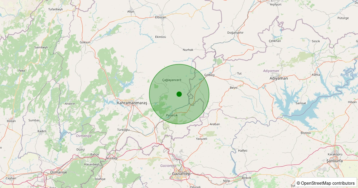 Son 7 gün içinde Pazarcık - Sakarkaya noktasından 100 km yarıçap içerisinde meydana gelen diğer depremler: