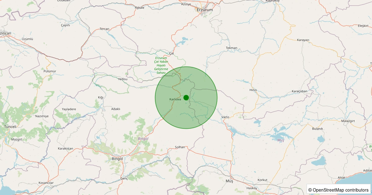 Son 7 gün içinde Karlıova - Kargapazar Köyü noktasından 100 km yarıçap içerisinde meydana gelen diğer depremler: