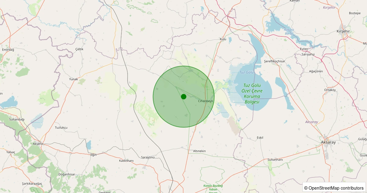 Son bir hafta içerisinde Konya şehri Cihanbeyli - İnsuyu noktasından 100 km yarıçap içerisinde toplamda 78 deprem kaydedilmiştir. Bu depremlerden en büyüğü 2.3 büyüklüğünde ve en sığ odaklısı 0.00 kilometre derinlikte gerçekleşmiştir.