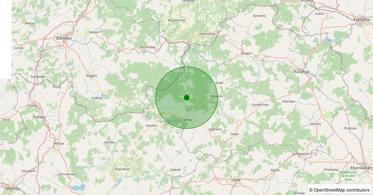 Son 7 gün içinde Simav - Yemişli Köyü noktasından 100 km yarıçap içerisinde meydana gelen diğer depremler: