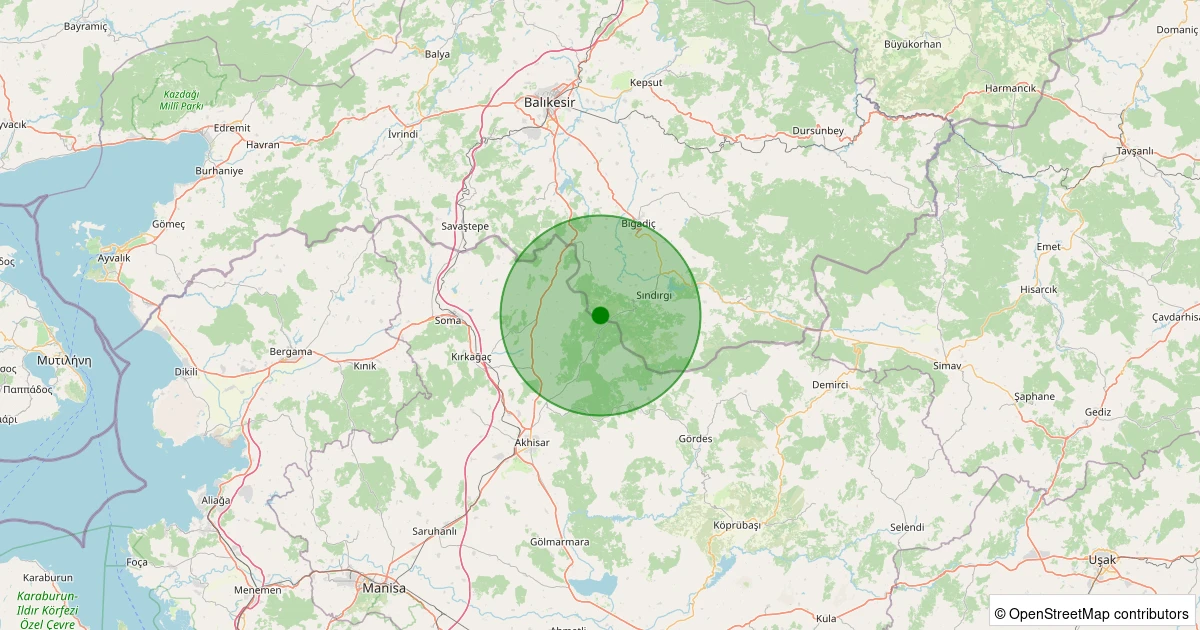 Son 7 gün içinde Sındırgı - Şahinkaya noktasından 100 km yarıçap içerisinde meydana gelen diğer depremler: