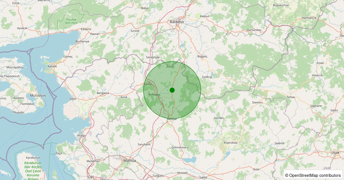 Son 7 gün içinde Kırkağaç - Gelenbe noktasından 100 km yarıçap içerisinde meydana gelen diğer depremler: