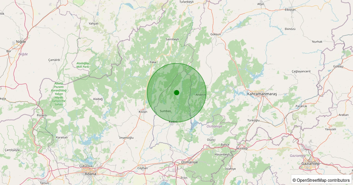 Son 7 gün içinde Kadirli - Kösepınarı Köyü noktasından 100 km yarıçap içerisinde meydana gelen diğer depremler: