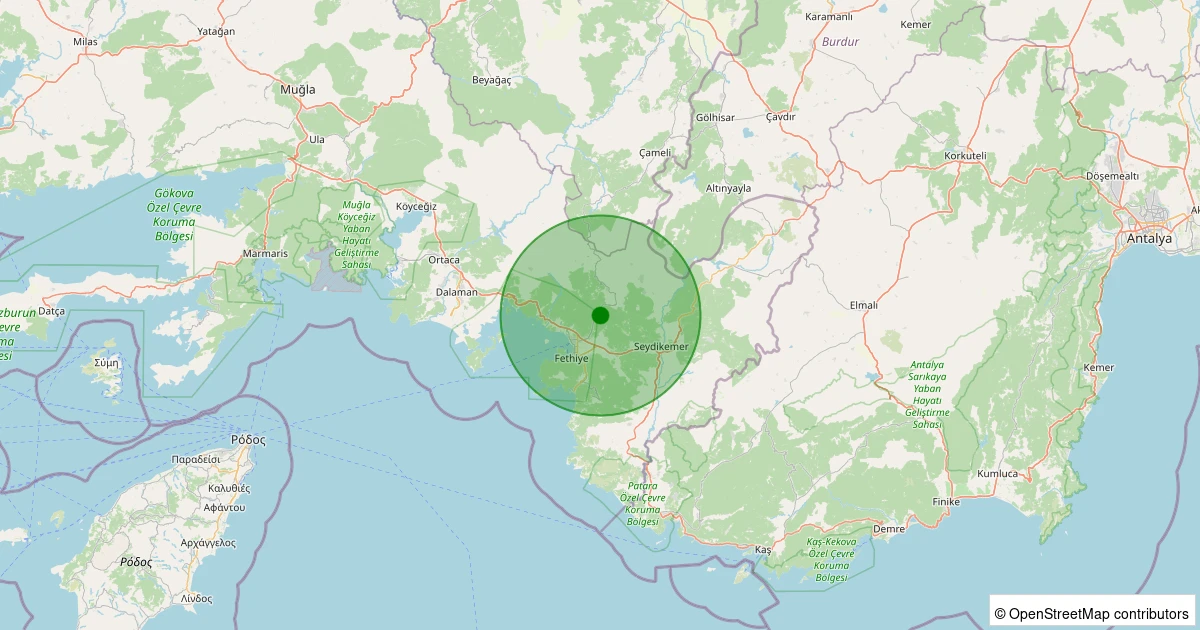 Son 7 gün içinde Fethiye - Üzümlü noktasından 100 km yarıçap içerisinde meydana gelen diğer depremler: