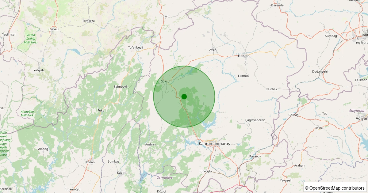 Son 7 gün içinde Onikişubat - Döngel noktasından 100 km yarıçap içerisinde meydana gelen diğer depremler: