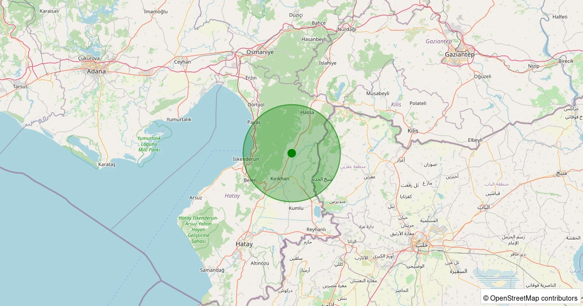 Son 7 gün içinde Hassa - Demrek Köyü noktasından 100 km yarıçap içerisinde meydana gelen diğer depremler: