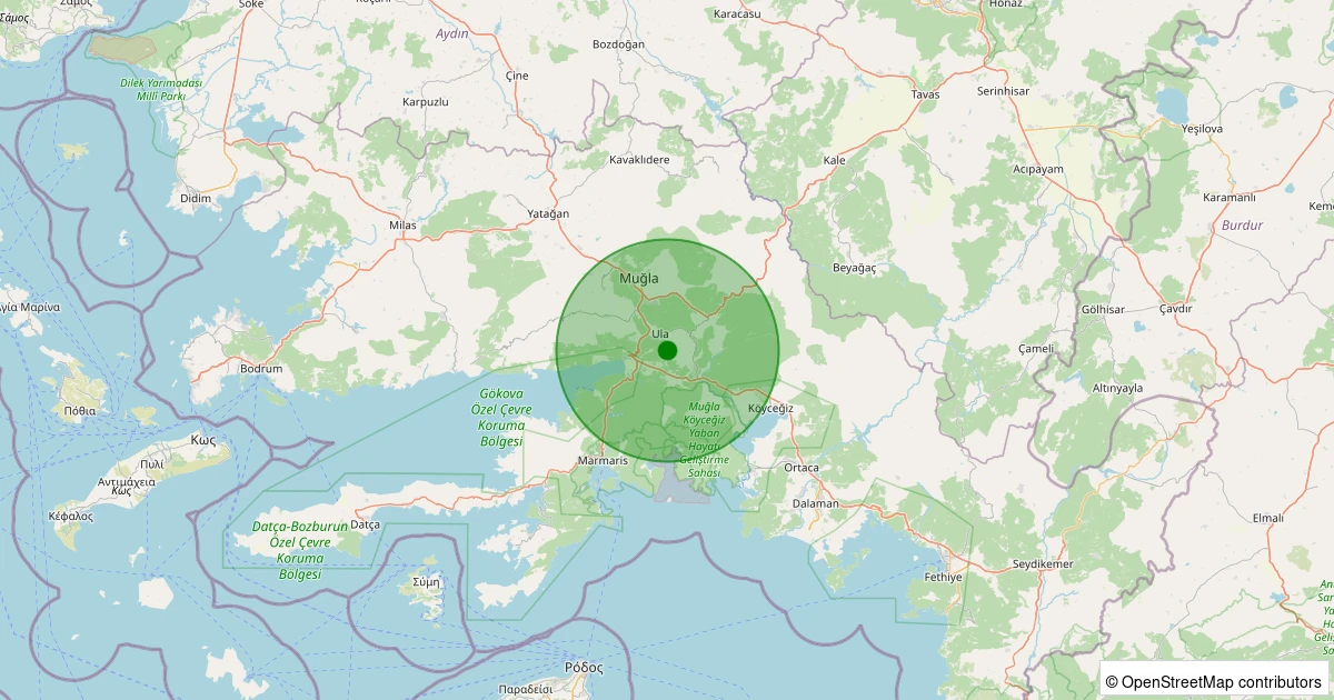 Son bir hafta içerisinde Muğla şehri Ula - Yeşilova noktasından 100 km yarıçap içerisinde toplamda 113 deprem kaydedilmiştir. Bu depremlerden en büyüğü 2.2 büyüklüğünde ve en sığ odaklısı 0.00 kilometre derinlikte gerçekleşmiştir.