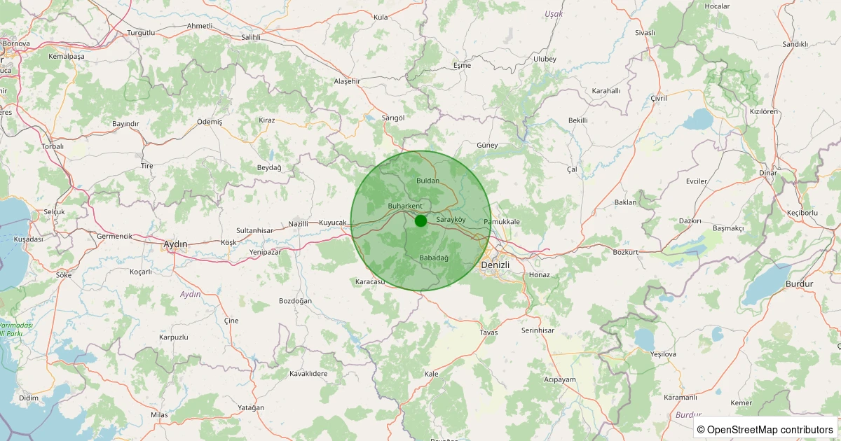 Son 7 gün içinde Sarayköy - Tekke Köyü noktasından 100 km yarıçap içerisinde meydana gelen diğer depremler: