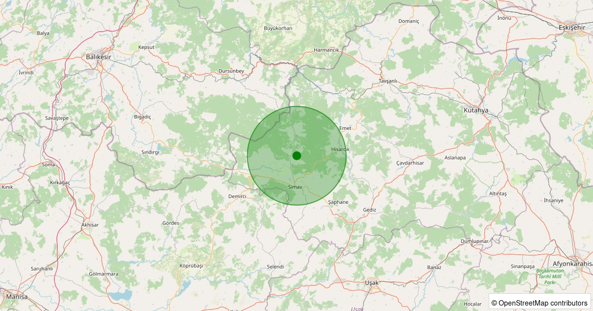 Son 7 gün içinde Simav - Yemişli Köyü noktasından 100 km yarıçap içerisinde meydana gelen diğer depremler: