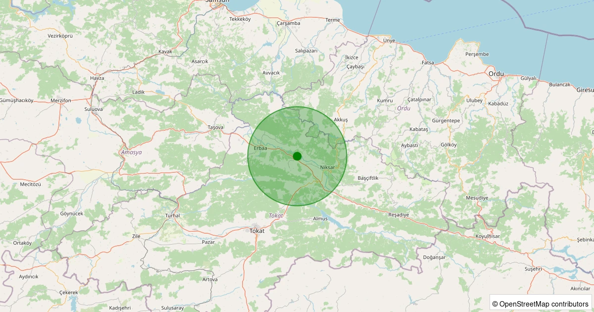 Son 7 gün içinde Niksar - Kümbetli Köyü noktasından 100 km yarıçap içerisinde meydana gelen diğer depremler: