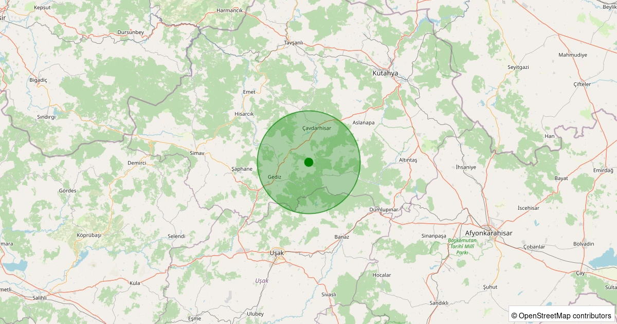 Son 7 gün içinde Gediz - Cebrail-Fatih Köyü noktasından 100 km yarıçap içerisinde meydana gelen diğer depremler: