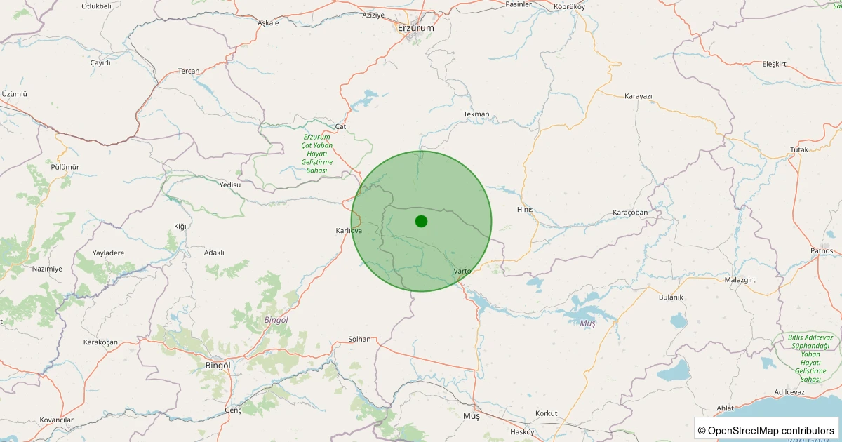 Son 7 gün içinde Karlıova - Yoncalık Köyü noktasından 100 km yarıçap içerisinde meydana gelen diğer depremler: