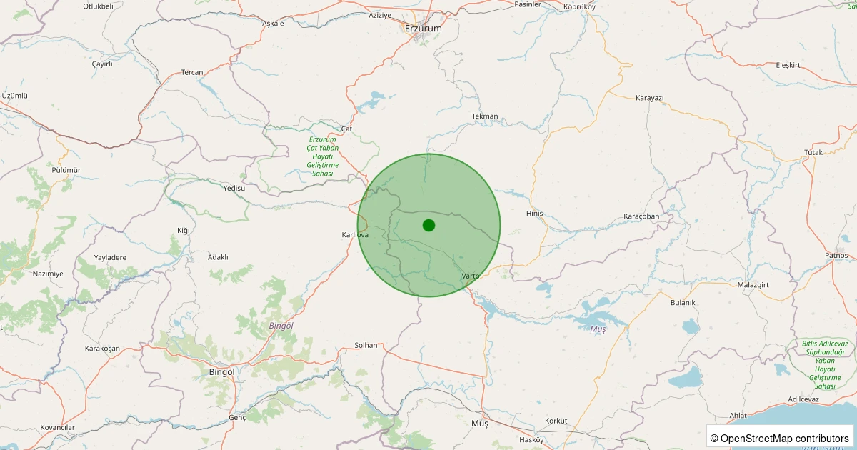 Son 7 gün içinde Varto noktasından 100 km yarıçap içerisinde meydana gelen diğer depremler: