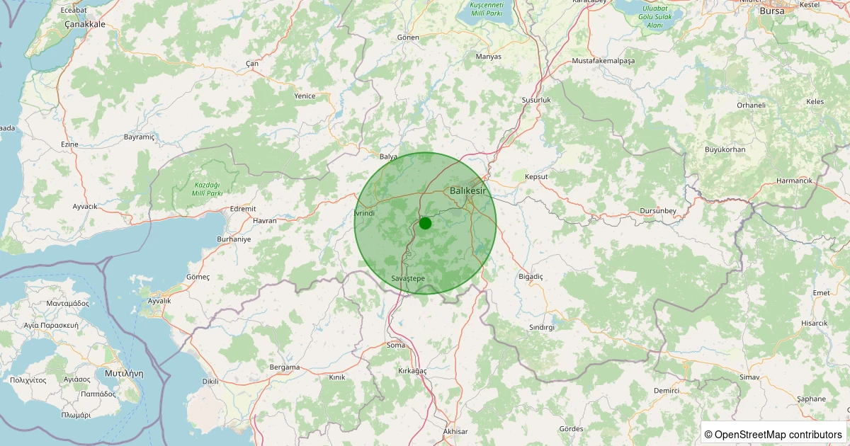 Son 7 gün içinde Altıeylül - Bahçedere noktasından 100 km yarıçap içerisinde meydana gelen diğer depremler: