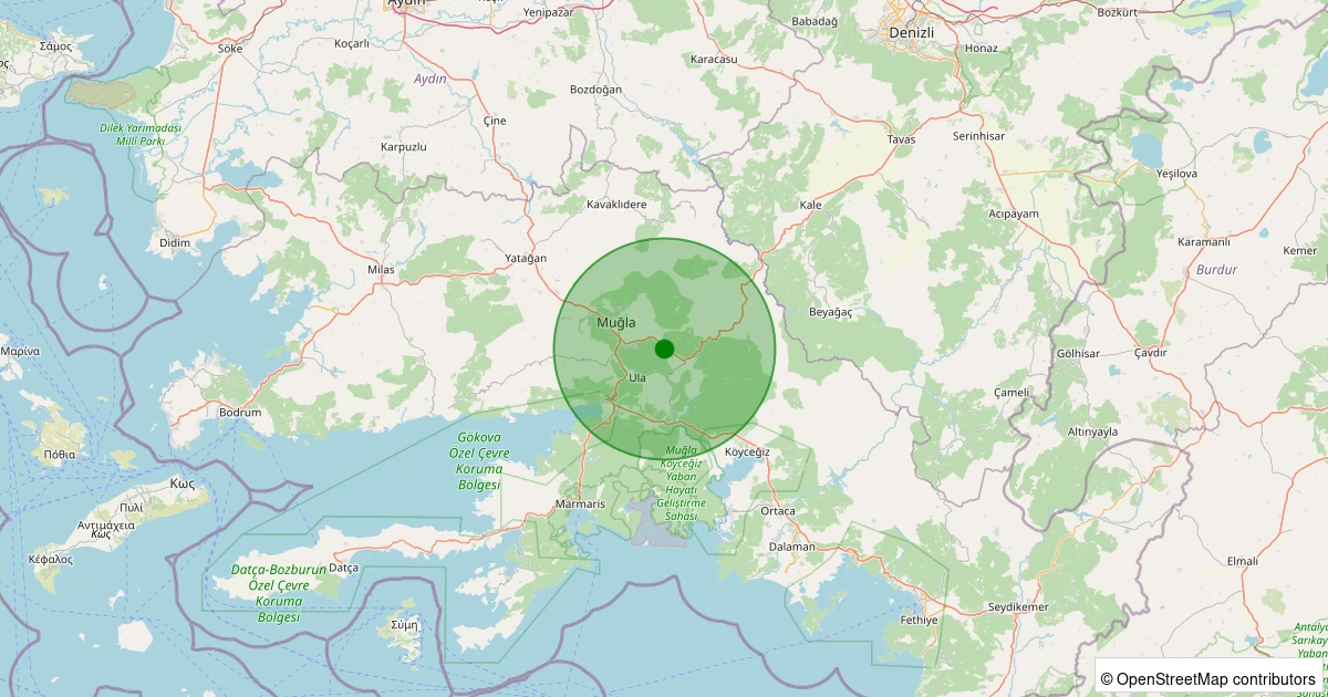 Son 7 gün içinde Menteşe - Yaraş noktasından 100 km yarıçap içerisinde meydana gelen diğer depremler: