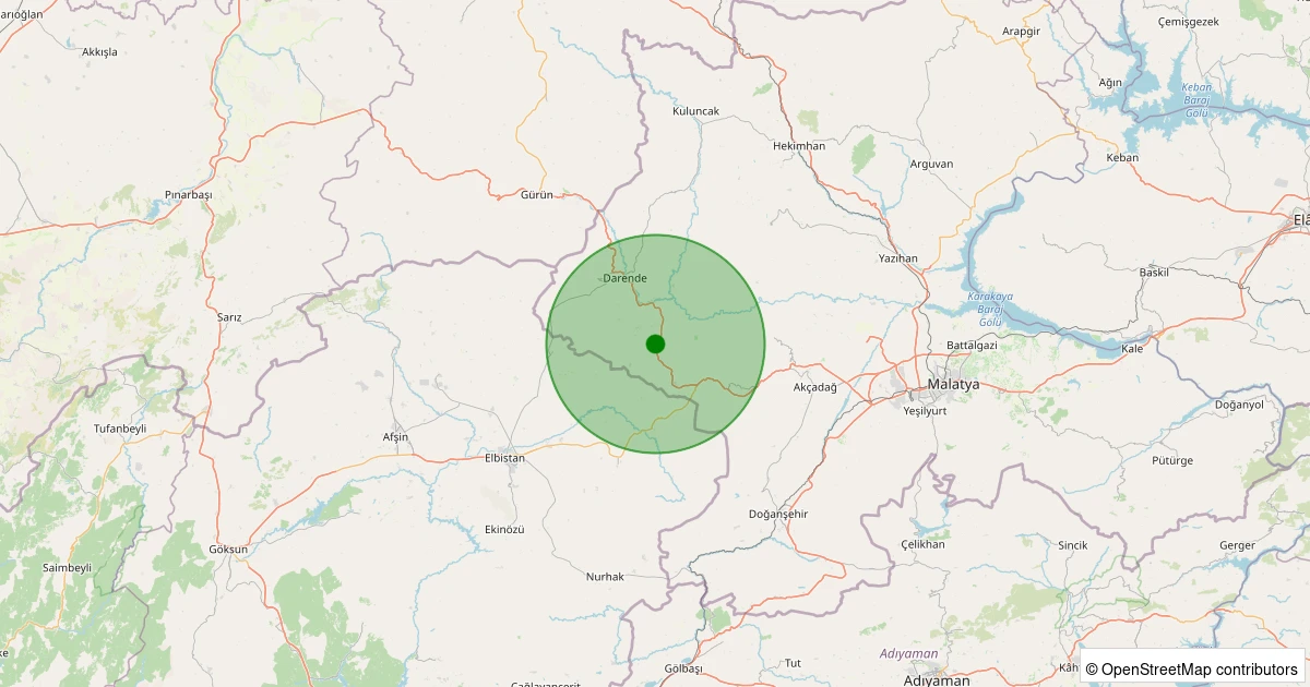 Son 7 gün içinde Darende - Ulupınar-Karataş noktasından 100 km yarıçap içerisinde meydana gelen diğer depremler: