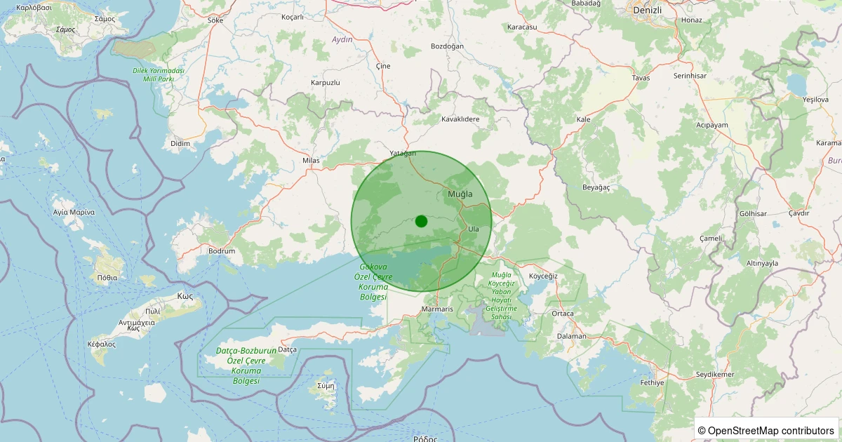 Son 7 gün içinde Menteşe - Yenibağyaka noktasından 100 km yarıçap içerisinde meydana gelen diğer depremler: