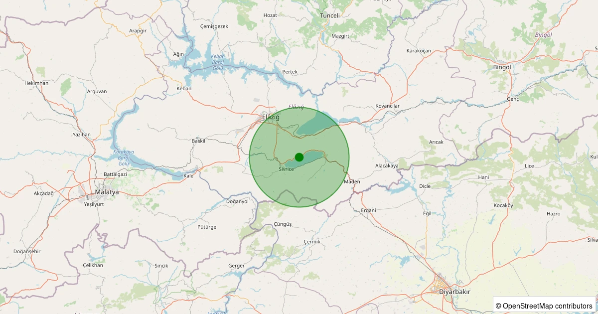 Son 7 gün içinde Sivrice - Güney Köyü noktasından 100 km yarıçap içerisinde meydana gelen diğer depremler: