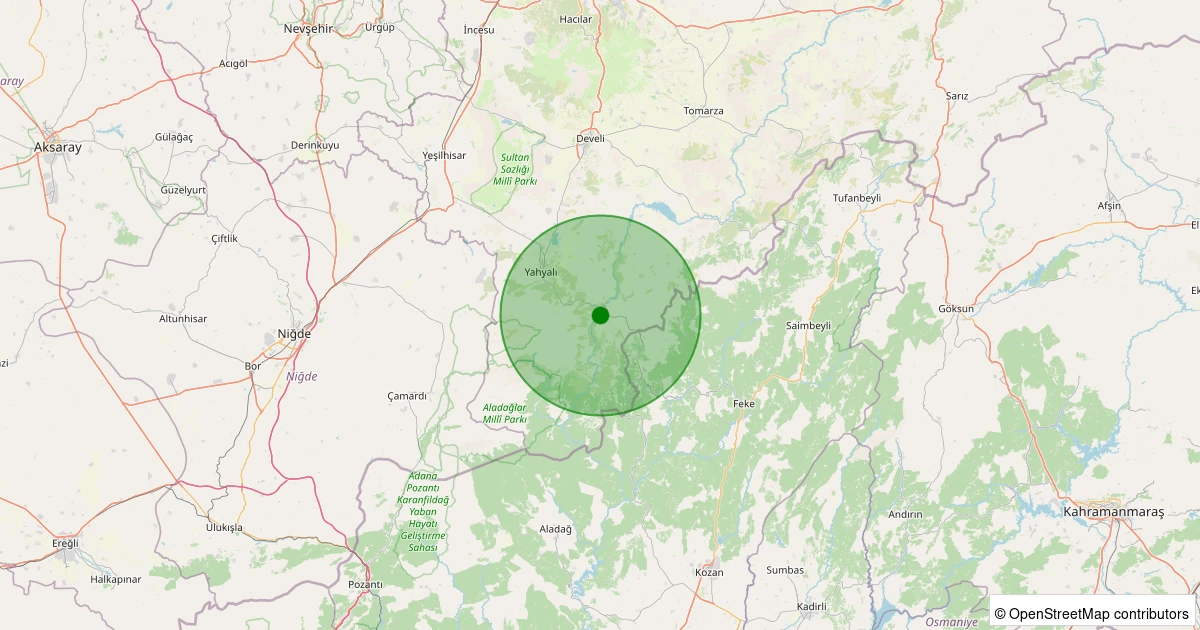 Son 7 gün içinde Yahyalı - Dikme noktasından 100 km yarıçap içerisinde meydana gelen diğer depremler: