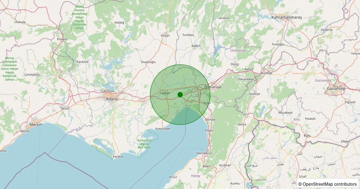 Son 7 gün içinde Ceyhan - Hamdilli noktasından 100 km yarıçap içerisinde meydana gelen diğer depremler:
